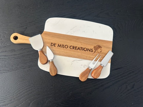 Marble & Acacia Wood Board and Knife Set - Medium (Customizable)